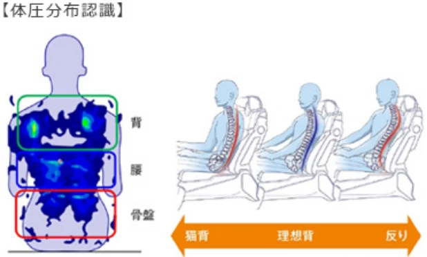 シートに座ると、シートに搭載されたセンサ情報を基にあなたの姿勢を自動で認識します。